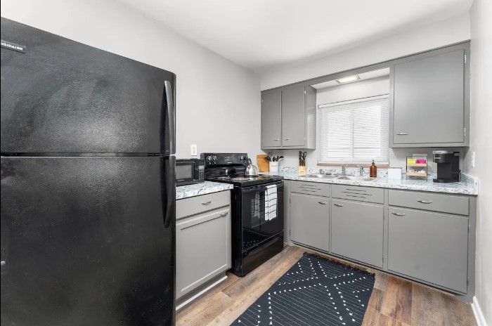 Whip up amazing meals in this cozy kitchen equipped with plenty of appliances and cooking basics for your convenience.