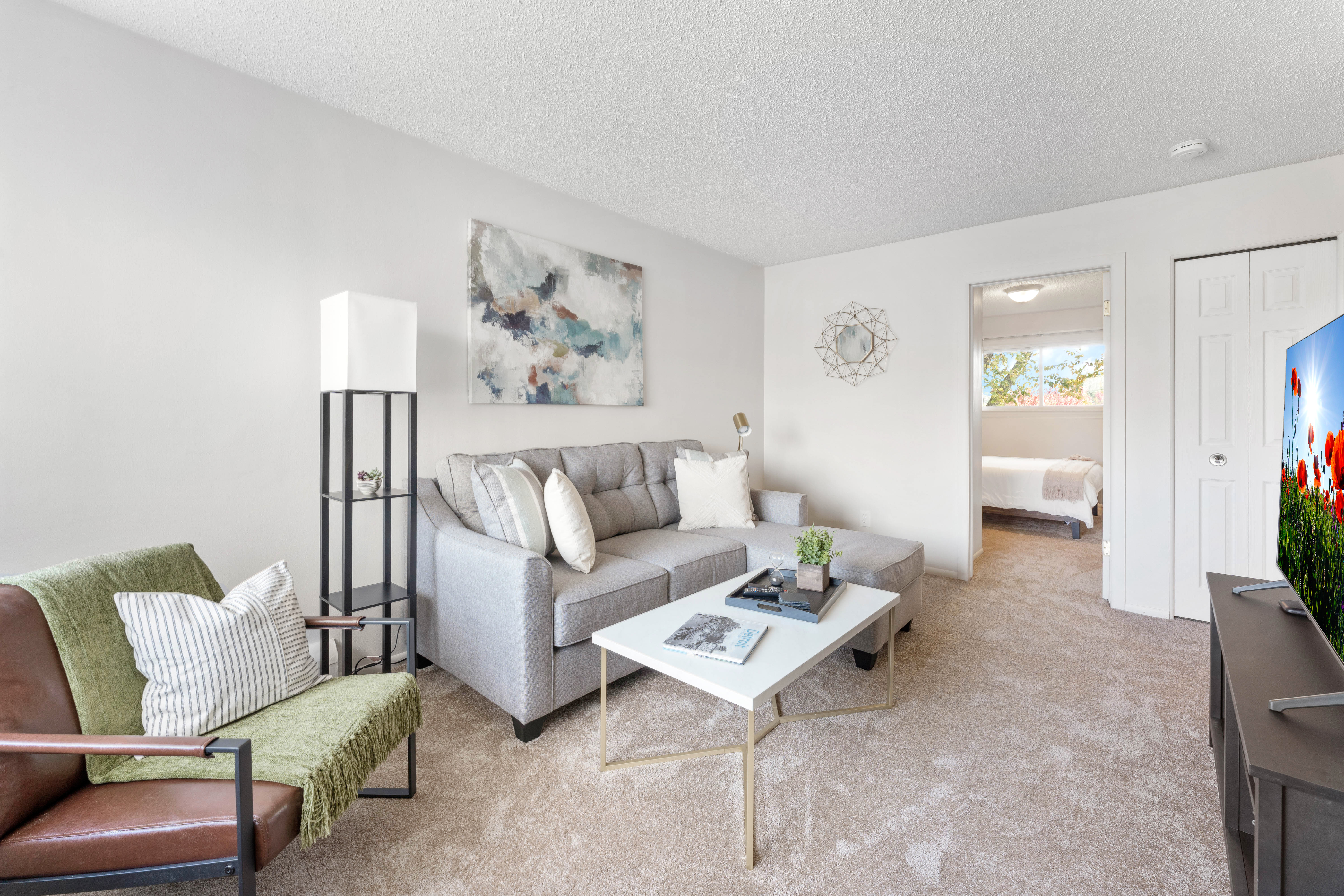 Cook dinner for two in a cozy kitchen and enjoy the luxury of dining at a modern table. This kitchen is equipped with everything you need to make this kitchen feel like a home away from home.